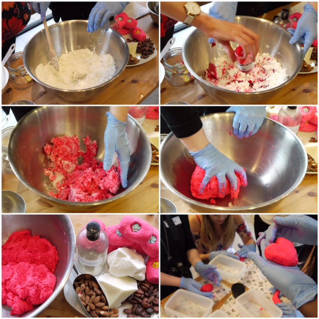 We got to make our very own Creamy Candy Bubble bar which is one of my favorites. I don't usually like sweet scents but for some reason I really like this one. Some of the ingredients included fair trade organic cocoa butter, almond oil and lauryl betaine cornflour. When the mixture was combined into a dough we let it sit for around 30 minutes for it to increase in size before sharing out the dough for everyone to mould their very own Creamy Candy bar! For me this was certainly the hi-light of the evening!