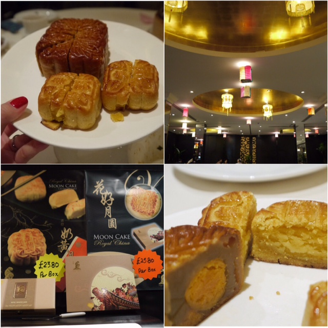 Whilst me and Lucy were chatting away it didn't take us long to finish everything, yes the 3 of us managed to clear the whole table. The waiter kindly brought over some chinese Mooncake to celebrate the Moon Festival on 27th September this year. These indulgent treats only come by once a year and they are made in-house by Royal China's expert pastry chef and each of them contain up to 1200 calories each!!! But that didn't stop me from eating one whole of the little one by myself haha! This years varieties include a box of eight mini egg yolk custard Mooncakes for £23.80 (my favourite) or a box of the traditional large flavour Mooncakes which is available in double salted duck egg yolk and lotus leaf paste for £28.50. These are very popular gifts amongst chinese families and last year Royal China sold more than 1,000! I would say the egg yolk custard version is the modern take which is to me is a lighter version of the large Mooncake - see the pic below.