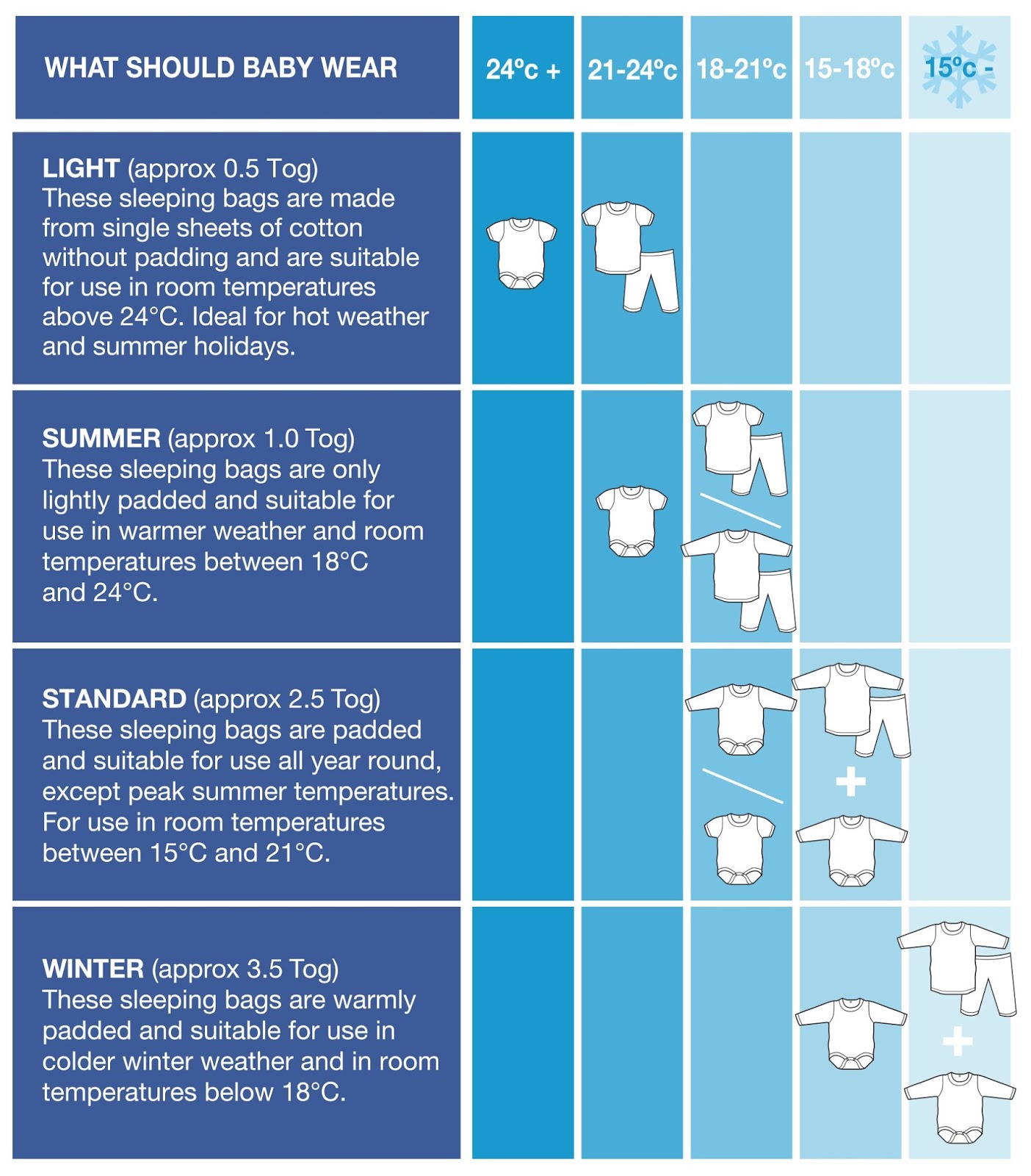 If I am honest this is all new to me and the last thing I want is for my little one to catch a cold so doing research on what I need etc and picking up the right things is essential. *Slumbersac provides a simple chart which gives a guide to what tog can be used throughout the year and at what temperature.