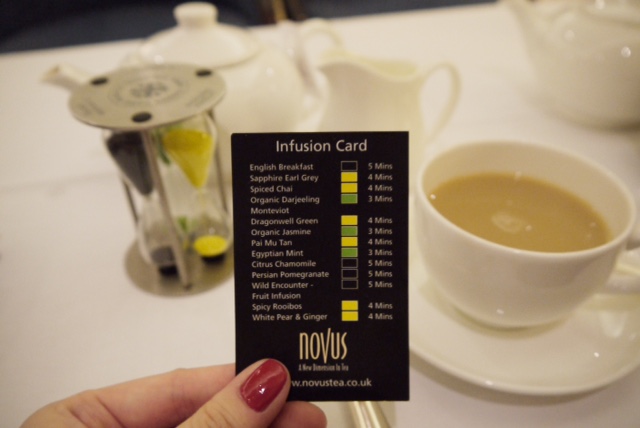 5 minutes brewing time for my English Breakfast Tea - I liked how we were given a card so we know how long to wait for the type of tea you have selected. Often when you make tea at home you forget you need to let it brew a little before pouring and adding in your milk. When the tea was ready for sipping we tucked into our sandwich selection.