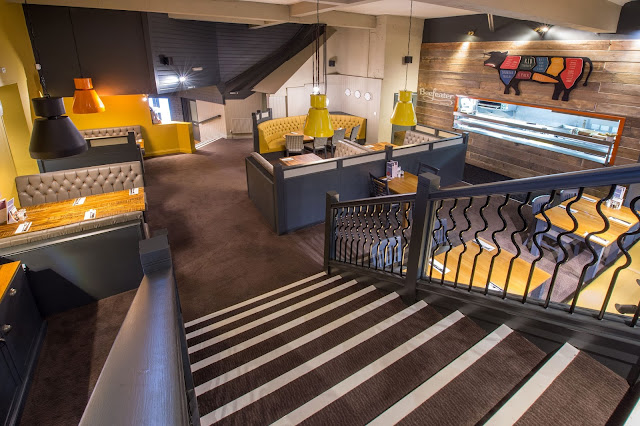 Not long left to go until our little one arrives so we are trying to make the most of date nights / eating out at the weekends. We were recently invited to the newly refurbished *The Hut Beefeater in Chandlers ford for dinner. We pre booked our table for 6:30pm for Saturday thinking it wouldn't be as busy but how wrong was I....when we arrived the place was packed and completely booked out for the whole evening and we were lucky our table was just about ready when we arrived so we were seated straight away. I have actually forgotten how family friendly this place was which will come in handy next year! Since it's newly decorated he decor is bright and warming as we walked through to our table and the waiter from the front desk was very cheerful and polite. They have done a great job of the refurbishment making the whole restaurant bright and welcoming with warm colour tones making it very inviting and pleasing to the eye.