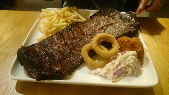 We arrived before 6:30pm so we were offered the lunch menu from £4.99 and the evening menu but we decided to opt for the evening menu as hubby wanted the huge rack of ribs for mains. So for starter we decided to go for the new Beefeater Sharing Platter to share with a bit of everything. The platter came with spicy piri piri chicken wings which were too spicy for me but hubby enjoyed them, crispy breaded flat cap mushrooms which are always a favourite of mine especially dipped in the ranch sauce. Lime potato dippers, I didn't really taste the lime but again dipped in ranch sauce they were amazing and lastly grilled chimichurri flatbread. The platter came with 3 sauces ranch, blue cheese and smoky BBQ. The portion is generous and probably a little too much for 2 people even with my pregnancy appetite so we didn't finish the flat bread.