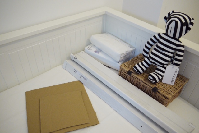The cot will need to be tidied up this weekend putting in bed sheets etc...but for now it's used as a storage area for all my bits and pieces. It's actually been quite handy just throwing everything in before I got the day bed. We picked up this John Lewis Eric Cot along with the John Lewis Spring Cot Mattress because I thought it was great value and I had vouchers to spend.