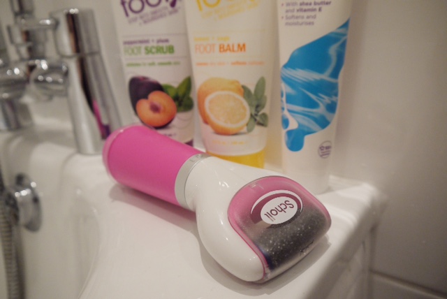 2. Then using my School Velvet Smooth from my Scholl Velvet Smooth Glam & Pedi Gift Set exclusively available at Superdrug to buff away any hard skin you may have under your feet. The pedi foot file roller head has long lasting micro-abrasive particles with finely ground diamond crystals to putt away hard skin instantly leaving you with super smooth feet.
