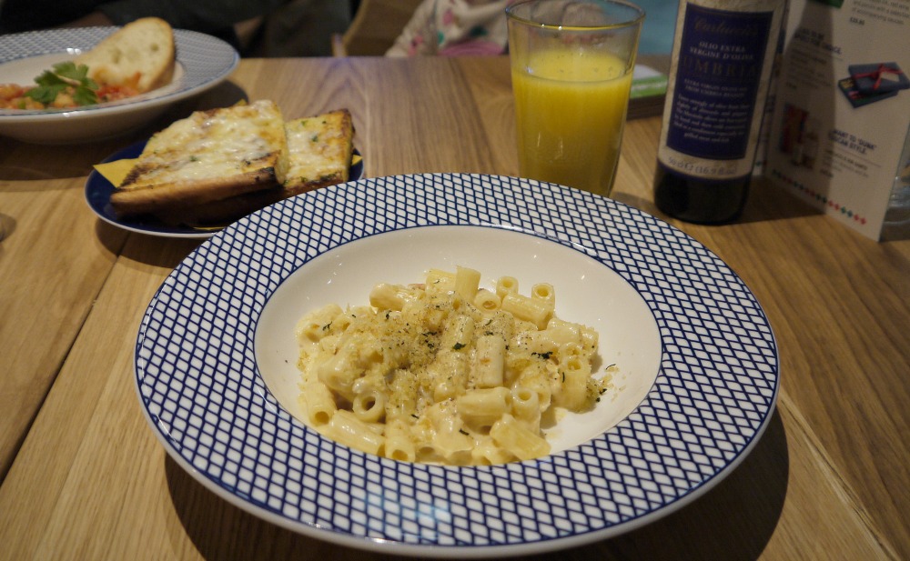 I have never heard of Carluccio until it landed in West Quay Southampton recently. It's actually situated in an unusual location bottom floor of West Quay, if you have been to West Quay you will know the restaurants are usually on the top floor of the food court. Carluccios Italian restaurants are all about quality ingredients inspired by Antonio Carluccio. We popped along on a Saturday afternoon and booked a table for late lunch 2pm and took the little one with us. When we arrived they already had a table ready along with a high chair and some crayons / activity sheet ready.