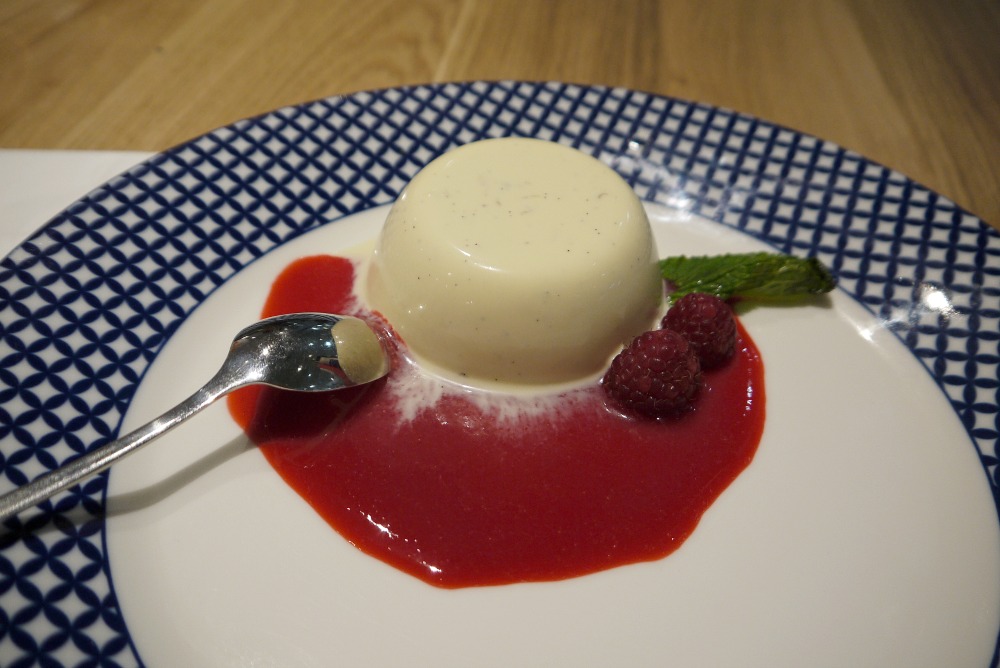 We finished off the meal with the Italian classic Affogato which is their vanilla ice cream served in a tall glass with a strong espresso to pour over the top. I picked one of my favourites Panna Cotta - vanilla and rum flavoured cream and some raspberry sauce.