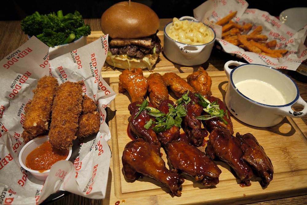 Last month we were invited to the newly opened Red Dog Saloon restaurant in Southampton to see what's on offer! Soon as we stepped through the door this place quickly reminded me of the restaurants we visited in Orlando a few years back with the American style decor. Relaxed atmosphere with plenty of meat to fill your belly! Soon as we sat down we were quickly ordering our drinks root beer for hubby and a chocolate milkshake for myself. Within 15 minutes all our food arrived so we had it all laid out to share.