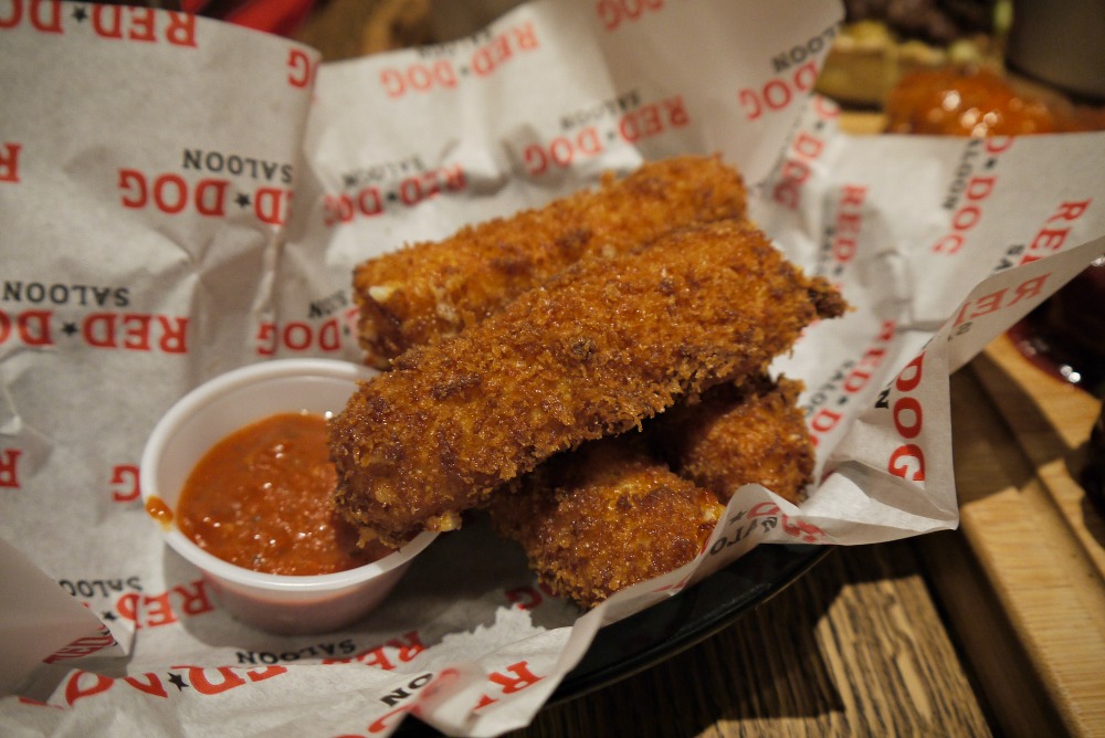 You can't visit Red Dog Saloon without trying out one of their burgers so we picked the bacon deluxe cheeseburger. Incredibly meaty and juicy yet SUPER filling! The meat was nice and tender so that went down pretty quickly. We also ordered a few sides Mac and cheese, sweet potato fries and mozzarella sticks and some tender broccoli with garlic and chili butter to share.